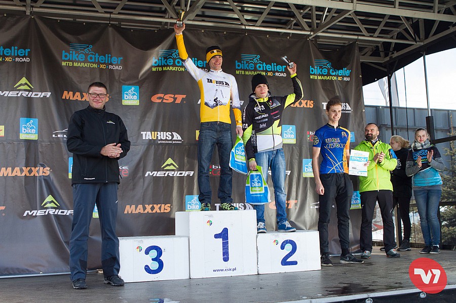 Pogoda przed maratonem oraz zdjęcia trasy w śniegu zapowiadały istny terror dla sprzętu a wyścig tylko dla prawdziwych twardzieli. Jak się potem okazało nie było tak strasznie, a nawet całkiem ładnie, bo ostatecznie po starcie wyszło słońce a i śniegu na trasie nie było! Pierwsze zjazdy jechałem zachowawczo przez co straciłem kontakt z czołówką, ale na kolejnych kilometrach udało się ją dogonić. Tak też wspólnie przebiegła większość wyścigu. Na drugim podjeździe pod Górę Świętej Anny mocniej przycisnął na pedały Bartek Huzarski a wraz z nim Mikołaj Jurkowlaniec. Udało im się odskoczyć oraz utrzymać przewagę kilkudziesięciu sekund aż do mety. Mi pozostała walka o 2 miejsce, lecz nogi tego dnia nie bardzo chciały współpracować, co skończyło się jej przekroczeniem na niezbyt zadowalającej 4 pozycji open jak i w kategorii.
