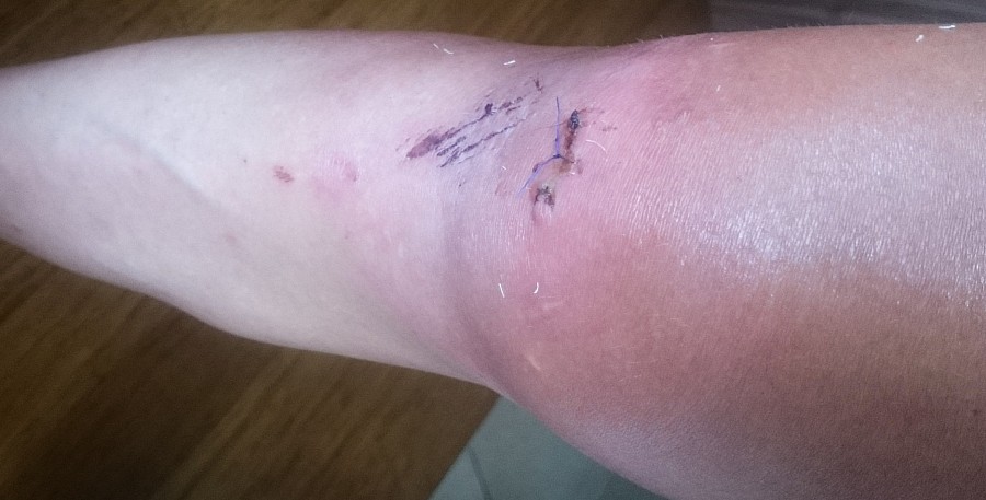 Wizyta w szpitalu zakończyła się wyczyszczeniem głębokiej rany po miejscowym znieczuleniu i szyciem. Lekarz tylko zaśmiał się, gdy wspomianiałam, że za 6 dni mam wyścig. Piekło zaczęło się, gdy znieczulenie przestało działać. Tej nocy czułam się znów jak po operacji obojczyka, kiedy rozrywający ból od środka nie pozwalał mi nawet napiąć mięśnia, by ruszyć nogą. Pierwsze 3 dni miały były najgorsze, bo nie mogłam nawet normalnie chodzić. Myśl, żeby wsiąść na rower wydawała się nierealna, zgięcie kolana sprawiało taki ból, jakby ktoś chciał mi rozerwać skórę.