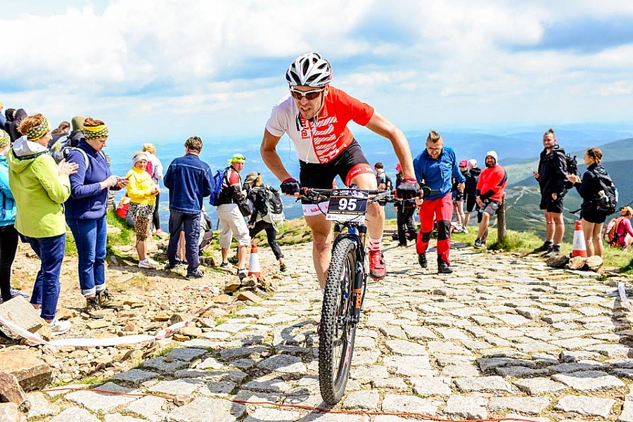 Walkę w pionie (ponad 1000 m i 13, 5 km) wygrał Marcin Mokiejewski z czasemj 55:05 (Mowi Sport Wrocław) i choć w tego typu wyścigach rzadko kolejność na mecie rozstrzyga się na ostatnich metrach, a zwycięzcy z reguły docierają do mety samotnie, w minioną niedzielę zwycięzcę od drugiego na mecie zawodnika dzieliły tylko dwie sekundy. Drugi na Śnieżce pojawił się Łukasz Derheld (EDF Trek Gdynia). Ze stratą nieco ponad 30 sekund do zwycięzcy, na miejscu trzecim, zameldował się Michał Ficek (Volkswagen Samochody Użytkowe MTB Team).