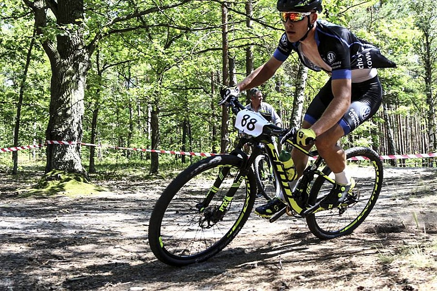 W minioną niedzielę wystartowałem w drugiej edycji Pucharu Mazowsza XCO w miejscowości Wesoła. Runda wyścigu była dość krótka i szybka, duże ilości korzeni i piasku utrudniały płynną jazdę, lecz dzięki pełnemu zawieszeniu Scott'a pokonywałem te elementy znacznie szybciej. Na piaszczystych zakrętach dzięki oponom Schwalbe przyczepność była znakomita.