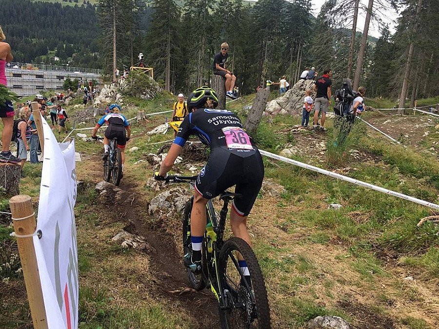 Startując w środku w tym roku zwykle po wyrobieniu pozycji stoję w korkach zamknięta ze wszystkich stron, a później to odrabianie, które kosztuje mnóstwo sił sprawia, że noga już nie kręci się tak, jak powinna. Tym razem to chyba rekord, gdy po odrobieniu pozycji wjeżdżam na 37. pozycji w drugą rundę z ponad dwuminutową stratą do pierwszych zawodniczek. Cały wyścig starałam się wyprzedzać tyle zawodniczek, na ile mogłam i na ile starczyło sił. Dało to 22. miejsce. Szwajcarzy przygotowali wymagającą, ale również jedną z lepszych tras MTB. Śliskie trawersy z korzeniami, parę wymagających dropów i jeden długi asfaltowy podjazd. Do tego lekko wilgotno. Teraz powrót do mojego ukochanego synka. Dla mnie to były bardzo długie dwa tygodnie.