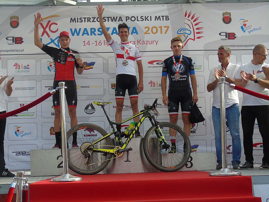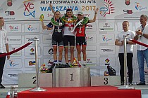 Mistrzostwa Polski w tym roku zorganizowane były w Warszawie na wcześniej mi nie znanej górze Kazurce. Trasa mocno interwałowa, z krótkimi stromymi podjazdami oraz sztucznymi zjazdami i przeszkodami, z pozoru wyglądała na łatwą. Zmagania rozpoczęliśmy już pierwszego dnia od wyścigu sztafet w składzie Marceli Bogusławski, Piotr Kryński, Kasia Solus oraz Marek Konwa. Szczęście dopisało i nasza drużyna Volkswagen Samochody Użytkowe MTB Team wywalczyła złoto w tej kategorii. Jeśli chodzi o wyścig Elity i młodzieżowców to sędziowie przygotowali dla nas dwie rundy rozjazdowe i osiem dużych okrążeń. Mocne tempo od wjazdu na rundę nadawał Marek Konwa, a zdołało je utrzymać tylko paru zawodników. W połowie wyścigu postanowiłem spróbować swoich sił i zaatakować na jednym z krótkich podjazdów i udało się zyskać kilka metrów przewagi nad drugim młodzieżowcem Filipem Heltą. Ostatnie dwie rundy starałem się jechać swoim tempem, kontrolując sytuację. Mistrzostwa Polski zakończyły się po mojej myśli. Koszulka zdobyta, a przy okazji wpadł brązowy medal w elicie!