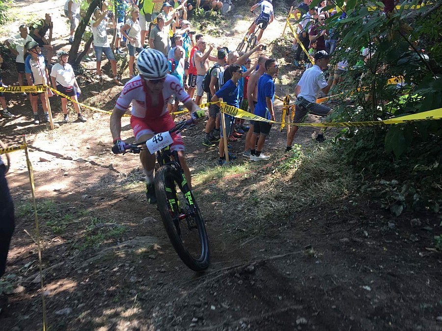 Po roku przerwy wracam na trasę Mistrzostw Europy. Ciekawa i techniczna trasa, a zarazem bardzo niebezpieczna, dawała się we znaki tym bardziej, że termometr pokazywał prawie 35 stopni. Nie lubię takiej pogody głównie ze względów alergicznych, ale jak trzeba,to trzeba. Czułem się dobrze cały wyścig, po szybkiej rundzie rozjazdowej przebiłem się do czołówki. Na drugiej rundzie byłem zmuszony zbiegać jeden zjazd, bo jeden z zawodników miał upadek, spowodowało to spadek o kilka pozycji do tyłu. Reszta wyścigu to równa jazda, dobra zabawa – właśnie na trudnych zjazdach - i walka z upałem. Na dwóch ostatnich rundach dostałem zastrzyku energii i przeszedłem na długim podjeździe jeszcze kilku zawodników, kończąc ME w czołowej 20-stce, tracąc zaledwie 3-4 minuty do zwycięzcy. Podsumowując, udany start i kolejna dosyć spora liczba punktów UCI wpadnie na moje konto. Super pojechała Kasia zajmując 6. miejsce w kobietach! Z ciekawostek, druga kobieta miała 3 minuty straty do zwyciężczyni.