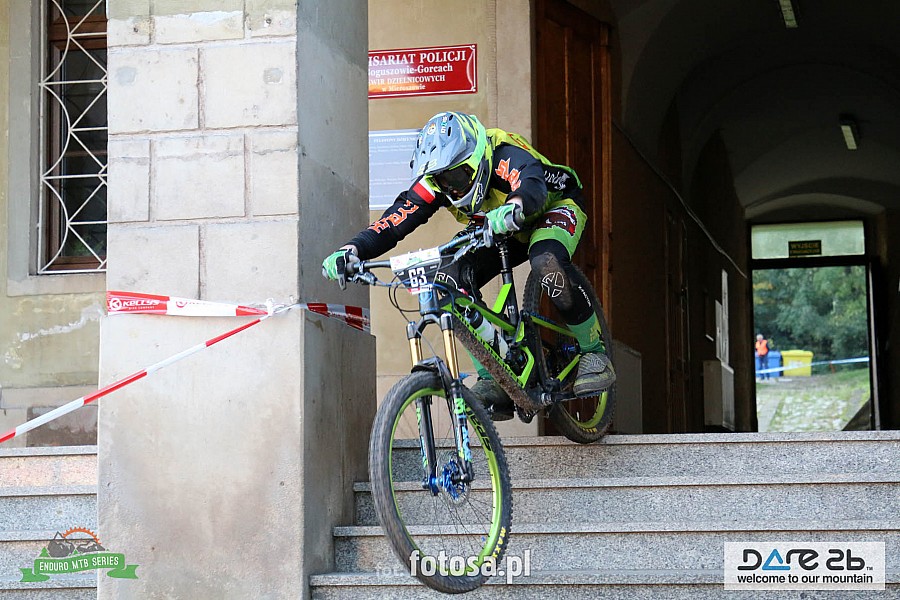 Sezon zawodów enduro w formacie „on-sight” właśnie się zakończył. Areną ostatnich zmagań były góry położone w Gminie Mieroszów. Dzikie i trudne single, wymagające i szybkie ścieżki, a często mało uczęszczane szlaki piesze. Rejon ma niesamowity potencjał jeśli chodzi o kolarstwo górskie, a szczególnie enduro. Organizatorzy zawodów postarali się, aby ten potencjał maksymalnie wykorzystać podczas imprezy. Złożyło się na nią aż 5 soczystych odcinków specjalnych w górach i jako ostatni OS miejski z widowiskowym przejazdem przez ratusz.