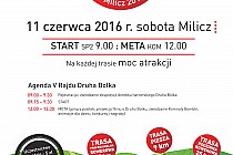 11 czerwca 2016. V Rajd Druha Bolka w Miliczu. Serdecznie zapraszamy na V już Rajd Rowerowy im. Druha Bolka, który odbędzie się 11 czerwca w Miliczu. W ramach Rajdu znajdują się dwie trasy rowerowe – 25km ( trasa rodzinna) oraz 55 km (trasa profesjonalna). Zaplanowaliśmy również trasę pieszą dla wielbicieli maszerowania. CEL IMPREZY: - Uczczenie pamięci Druha Bolesława Zajiczka - Popularyzacja turystyki rowerowej i pieszej - Propagowanie zdrowego trybu życia, aktywnego wypoczynku i rekreacji - Popularyzacja bezpiecznej jazdy na rowerze - Poznanie walorów turystycznych Doliny Baryczy i...