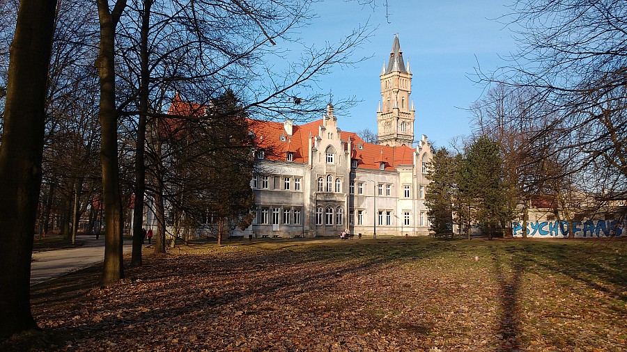 Opuszczam miasto i jadę dalej DK 78 do Świerklańca , mimo niedzieli na tej trasie spory ruch.Po drodze zatrzymuję się w Nakle Śląskim by zobaczyć pałac Donnersmarcków z 1856 r,otoczony starym parkiem.