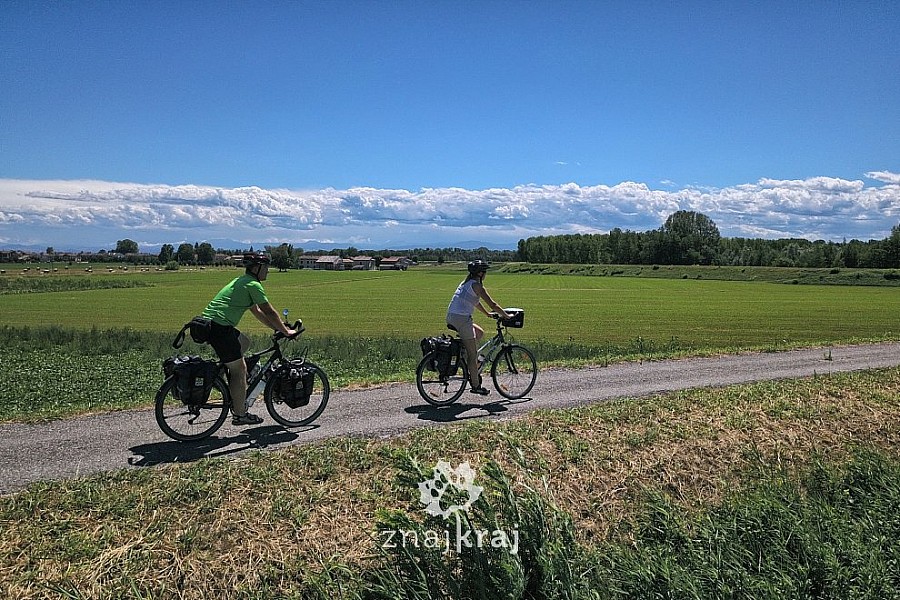 Ostatni odcinek trasy przejechaliśmy po świetnych drogach rowerowych. Z Parmy szybko dotarliśmy nad Pad, wzdłuż którego biegnie asfaltowa droga rowerowa poprowadzona po wałach przeciwpowodziowych całego systemu rzecznego Padu. Planując Waszą trasę po Emilii-Romanii pamiętajcie, że nad dolnym odcinkiem Padu leży Ferrara, uważana za najbardziej rowerowe miasto Włoch. A z niej nad Adriatyk prowadzi popularna trasa rowerowa delty Padu. I jeszcze, że w całej Emilii-Romanii jest kilkanaście obszarów chronionych, po których poprowadzono bardzo przyzwoite trasy rowerowe. Przez jeden z nich po położonych na uboczu drogach rowerowych wyjeżdżaliśmy z okolic Modeny w stronę Apeninów.