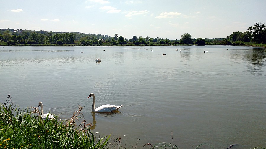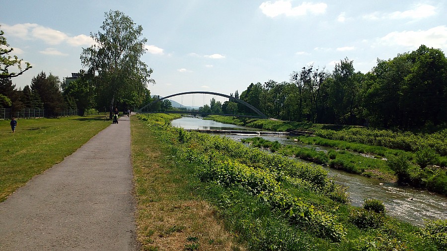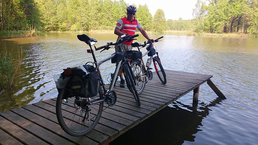 Z domu ruszam pięć minut przed siódmą rano i jade do kumpla z którym to ruszamy do Katowic.Tu rozpoczyna się czerwony szlak nr 1 Katowice-Glinka.Przez Katowicką dolinę trzech stawów i południowe dzielnice miasta,cały czas lasami dojeżdzamy do Tychów.W rejonie dworca kolejowego kumpel łapie gume.Po sprawnej naprawie ruszamy przez miasto w kierunku jeziora Paprocańskiego zachaczajac jeszcze o sklep rowerowy by uzupełnić zapas dętek :-) Posilamy się nad jeziorem i ruszamy do Pszczyny przez Kobiór,trasa cały czas lasami.W Pszczynie jak to w pogodny wolny dzień sporo ludzi.Lody na rynku,nawadnianie,kilka fotek i opuszczany miasto kierując się na zaporę w Goczałkowicach,gdzie też zastajemy spory ruch rowerów,pieszych biegaczy itp.Tu czerwony szlak biegnie dalej w kierunku Bielska a my jedziemy Wiślaną Trasą Rowerową.Wiejskimi drogami dociągamy do rzeki Wisly przed Skoczowem.Od tego miejsca trasą rowerową wałami wzdłuż rzeki przez Skoczów i Ustroń do centrum Wisły.Bardzo ładna przyjemna trasa nad samą rzeką choć ze względu na długi weekend panował spory ruch.W miasteczku rozsiadamy się nad rzeką,wypijamy po piwku i wsiadamy w pociąg powrotny do domu.