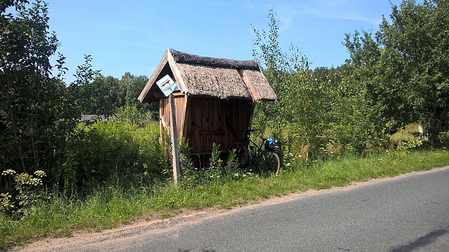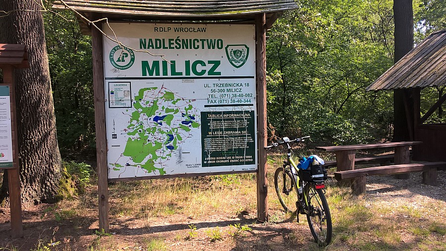 W Skotoszewie skręcamy lekko w lewo i jedziemy nierówną wybrukowaną drogą do lasów milickich. Przy wieśdzie do lasu przy tablicy informacyjnej stoi przyjemna wiata, gdzie można zregenerować siły.