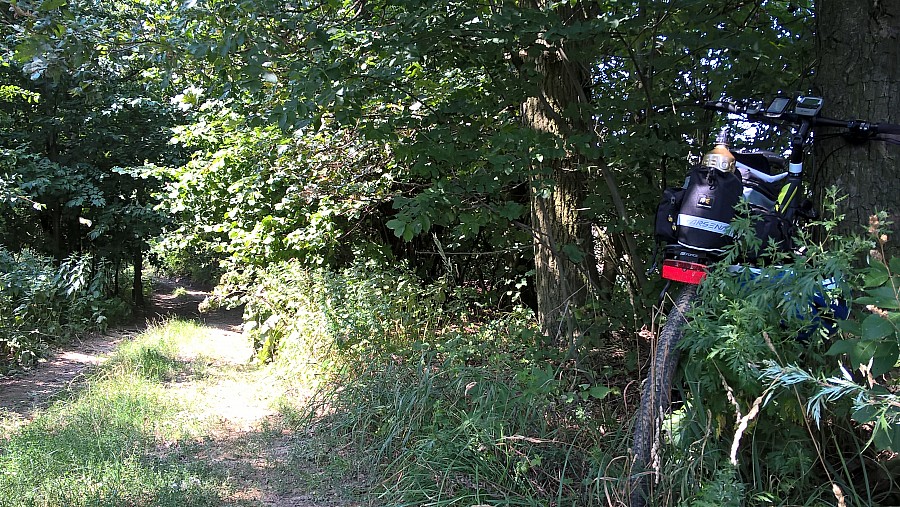 Dalej lasem milickim przez jakiś czas dalej tą nierówną wybrukowaną drogą jedziemy w kierunku wsi Brzezie. Nie wiem jak tam jest normalnie, ale po tych wielkich upałach wciąż znajdowały się odcinki dość błotniste, na które należy uważać.