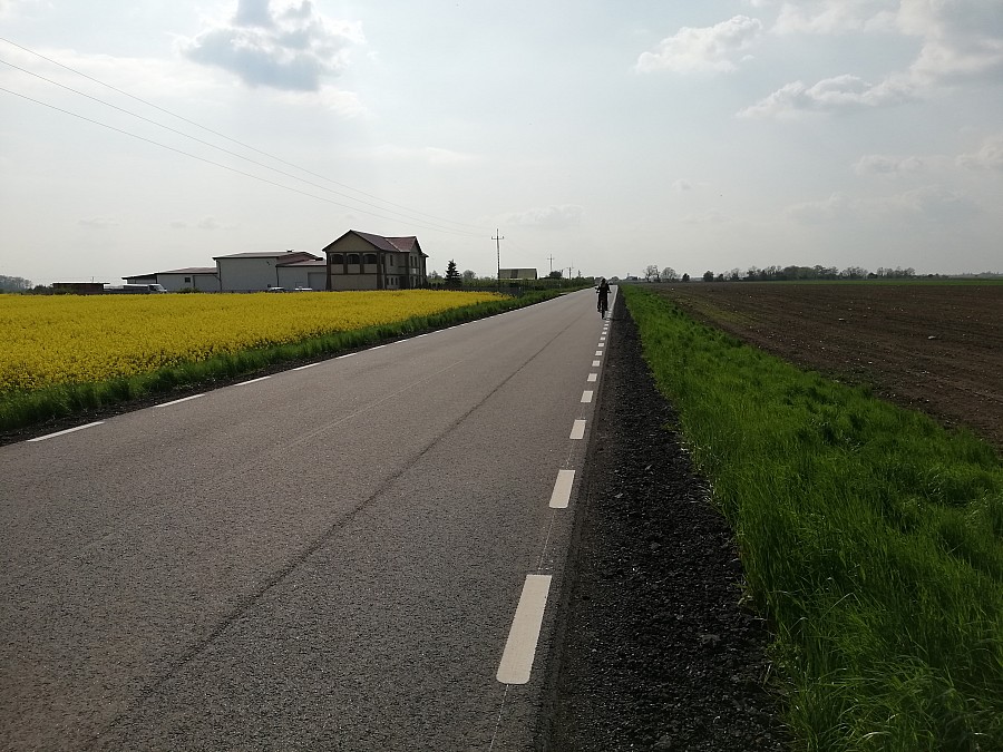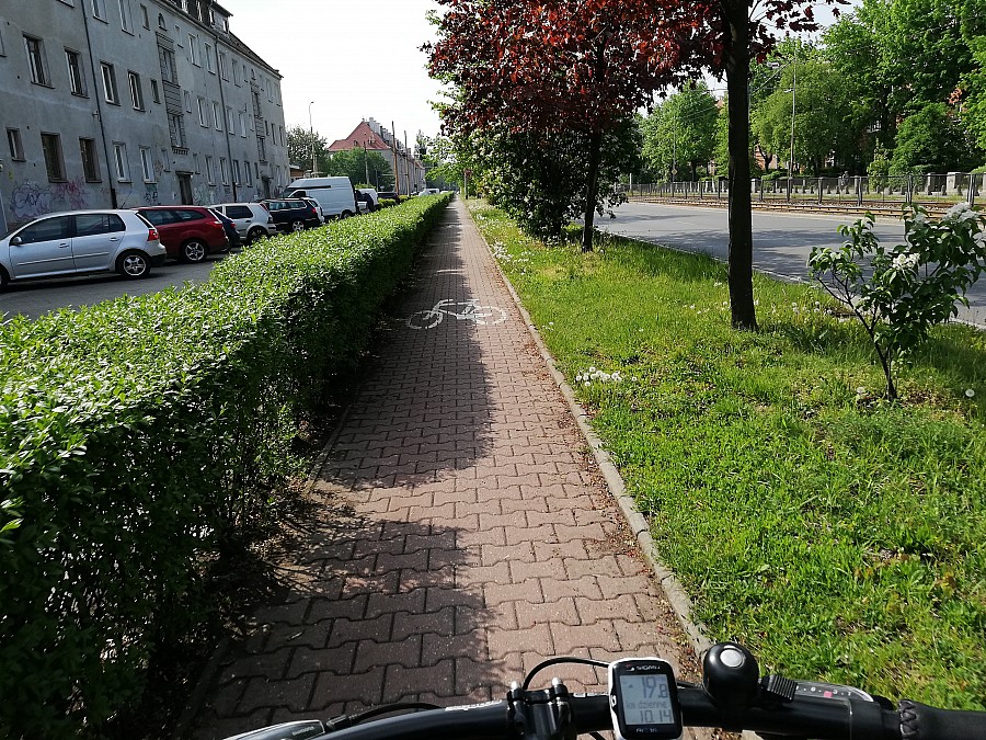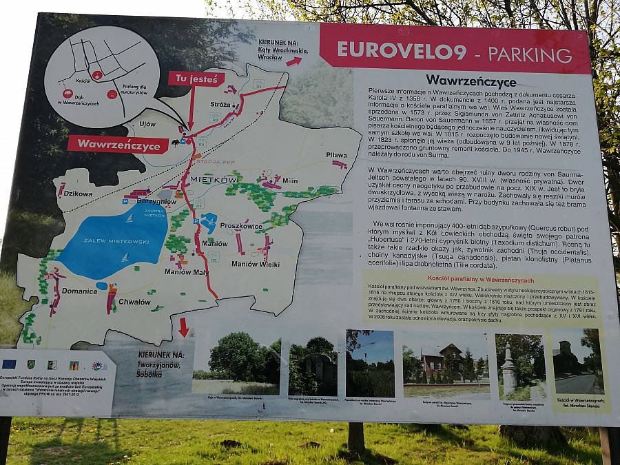 Trasę rozpoczęliśmy po godzinie 15:00 niedaleko Dworca Autobusowego i Dworca PKP we Wrocławiu. Przejechaliśmy po jezdni w stronę ul. Powstańców Śląskich, gdzie wjechaliśmy na ścieżkę rowerową, która jest częścią EuroVelo 9 (R9). Dalej kierowaliśmy się w stronę Smolca wspomnianą R9. Przy ulicy Krzemienieckiej we Wrocławiu był spory ruch samochodowy i niestety ma tam wydzielonego pasa dla rowerów. Po wjechaniu do powiatu wrocławskiego (za obwodnicą Wrocławia) komfort jazdy znacznie się poprawił, ponieważ pojawiła się asfaltowa ścieżka rowerowa, która skończyła się w Smolcu. Tam skręciliśmy w prawo w mało uczęszczaną drogę osiedlową ze spowalniaczami, która następnie przekształciła się w szeroką drogę pieszo-rowerową. Od Krzeptowa jechaliśmy już jezdnią o bardzo dobrej nawierzchni. Czekał nas też odcinek drogi polnej (ul. Polna) między Małkowicami a Sadowicami, który po wcześniejszych deszczach miejscami był grząski i błotnisty, dlatego lepiej troche nadłożyć drogi po szosie i ominąć tą część szlaku R9. Po tym odcinku kontynuowaliśmy trasę po jezdni. W okolicach przejazdu kolejowego w Kątach Wrocławskich stojące tiry zasłoniły znak skrętu szlaku, który był umiejscowiony po lewej stronie jezdni. Nie zauważyliśmy tego i pojechaliśmy do Pełcznicy, gdzie sprawdziliśmy mapę i zawróciliśmy do Kątów Wrocławskich. Tam zaraz za przejazdem kolejowym skręciliśmy w prawo, jak prowadziły znaki. Dalsza część trasy była dobrze oznaczona, a nawierzchnia drogi była idealna do jazdy. Minusem był mocny wiatr i miejscami spory ruch samochodowy. W Mietkowie skręciliśmy w prawo zaraz za Barem Myśliwskim (w ulicę Spółdzielczą), następnie w lewo w ulicę Chłopską i później w prawo w ulicę Ogrodową, która prowadzi do Zalewu Mietkowskiego. Żeby dojechać do plaży w Borzygniewie wystarczy kierować się znakami.