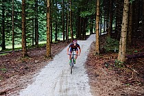 Zaczęlismy podjazd szosą (droga 392) na Przełęcz Puchaczówka, gdzie odbiliśmy w lewo w dziurawą asfaltową drogę. Tą utwardzoną drogą dojechaliśmy aż do zagrodzonego Radiowo Telewizyjnego Ośrodka Nadawczego Czarna Góra. Szlak rowerowy odbija w lewo, zaczyna się wąski singiel (ok. 600m od celu), dość trudny do przejechania. Podążamy za rowerowymi znaczkami, końcówka jest mocno kamienista, a ostatni fragment, niezbyt długi, trzeba pokonać niestety pieszo. Za nim pojawi się już górna stacja wyciągu i początek naszego zjazdu. Do wyboru jest kilka tras, ale poza Milki Way, pozostałe są typowo zjazdowe.