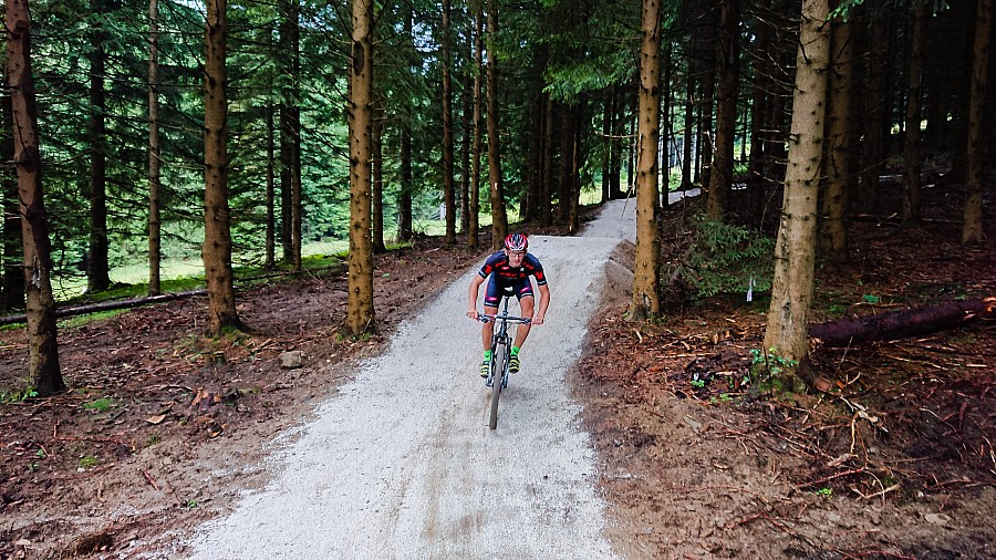 My wybraliśmy łatwą wersje, czyli Milky Way. Początkowo jest bardziej naturalna, w dalszej części wysypana drobnym kamieniem. Na całej długości ok 6km o łagodnym nachyleniu mamy sporo muld, a także stoliki i wyprofilowane bandy. Każdy spokojnie znajdzie tu coś dla siebie, na pewno trochę przyjemności z jazdy po singlach MTB.