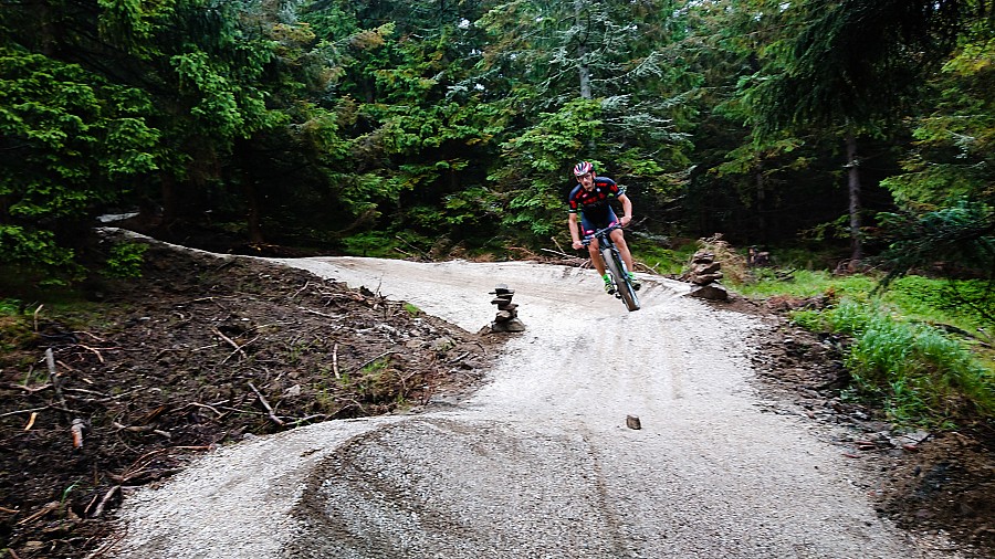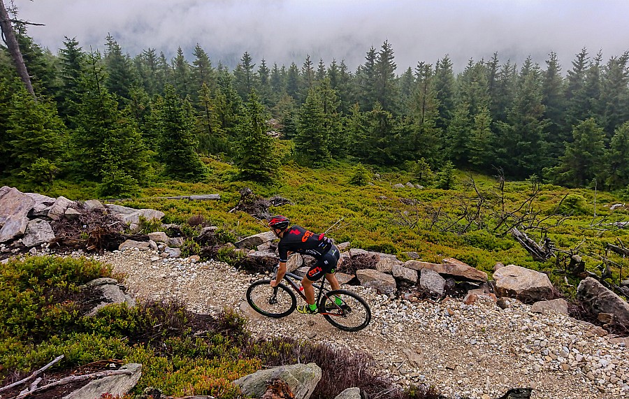 Czarna Góra Bike Park położony w Kotlinie Kłodzkiej blisko Masywu Śnieżnika znany jest głównie z tras typu downhill i enduro, ale ostatnio wybudowano i udostępniono nowy singiel MTB o przyjemnie brzmiącej nazwie Milky Way. Tą trasą o długości ok 6km zjedzie praktycznie każdy i nie trzeba tu bardziej zaawansowego sprzętu. Mając ze sobą lekkie hardtaile, postanowiliśmy poszukać też ścieżki w górę, zamiast korzystać z wyciągu.