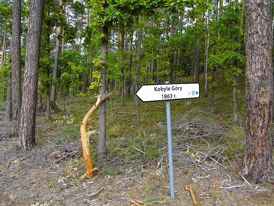 Cel to Kobyle Góry. Osiągnięty jak po sznurku . Nie można zbłądzić. Natomiast powrót przez las może być przygodą. Charakterystyka tych terenów jest bardzo do siebie podobna .Wydmy i piach i korzenie.