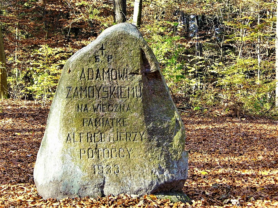 Cel to kapliczka i obelisk .Kapliczka poświęona Dziuni Adamowej , obelisk ufundowany przez Potockich pamięci Adamowi Zamojskiemu.