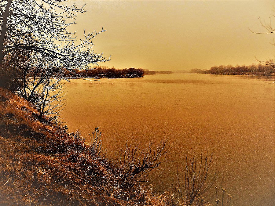 8 stycznia ,a pogoda bardziej jesienna, wobec tego kolejna wycieczka . Ujście Sanu do Wisły , tym razem od strony miejscowości Antoniów , albo Pniów /prawa strona rzeki/. Po dojechaniu do Radomyśla w kierunku mostu na Sanie i przed mostem w dół wzdłuż wałów.