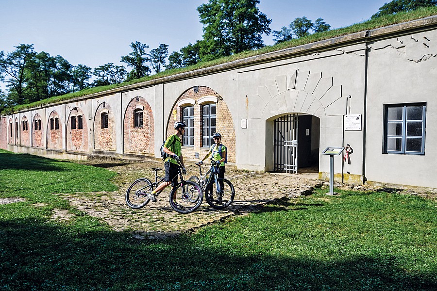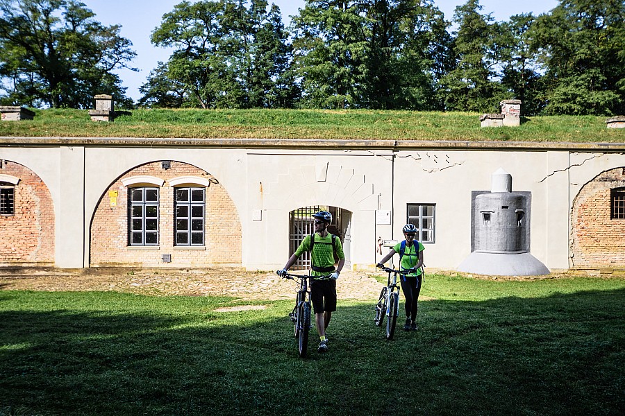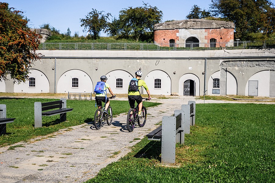 To niezwykle atrakcyjna wycieczka szlakiem północnej Fortecznej Trasy Rowerowej. Szlak, oznakowany kolorem zielonym, rozpoczyna się w centrum Przemyśla, obok mostu na Sanie. Ruszamy drogą rowerową wzdłuż rzeki. Ścieżka kończy się pod mostem obwodnicy. Dalej jedziemy drogą publiczną. Od początku aż do Bolestraszyc kierujemy się za znakami Green Velo. W Buszkowicach będziemy podziwiać okazały kościół w dawnej cerkwi , a w Bolestraszycach zwiedzić można arboretum. Kilkaset metrów dalej opuszczamy szosę, skręcając w lewo. Tu zaczyna się pieszy czarny Szlak Forteczny. Ponieważ oznakowanie szlaku rowerowego jest fragmentaryczne, sugerujemy posiłkowanie się znakami szlaku pieszego. Po krótkim podjeździe ujrzymy pierwszy obiekt forteczny – Fort XIII „San Rideau”. Tutaj odbijamy w lewo, drogą gruntową, a następnie w prawo, mijając Fort XIIIb „Bolestraszyce”. Klucząc między sadami, a następnie zabudowaniami Żurawicy, dojeżdżamy do Fortu XII „Werner”. Obiekt jest zamknięty, na zwiedzanie trzeba się umówić. Przed fortem odbijamy w lewo. Przed nami najtrudniejszy odcinek trasy – przejazd gruntową ścieżką wśród pól. Ruchliwą drogę nr 77, zachowując ostrożność, przekraczamy na wprost, by po chwili znaleźć się przed udostępnionym do zwiedzania Fortem XI „Duńkowiczki”. Poruszając się lekko pod górę, na przemian drogami asfaltowymi i szutrowymi, mijamy cmentarz poległych w Twierdzy Przemyśl oraz kolejne forty. Nie wszystkie leżą bezpośrednio przy szlaku, niektóre są oddalone o około 100 – 300 m. Wprawdzie drogę dojazdu wskazują stojaki z oznaczeniem, ale nie są one zbyt czytelne z daleka, więc należy zachować czujność, żeby nie przeoczyć zjazdu. Podjazd kończymy skrętem w lewo, w ruchliwą drogę Ujkowice – Przemyśl, którą opuszczamy po kilkuset metrach. Łagodnym zjazdem dojeżdżamy do ostatniego obiektu na trasie – widokowo położonego Fortu VIII „Łętownia”. Warto zatrzymać się na dłużej, by podziwiać panoramę na dolinę Sanu i zwiedzić zachowany w dobrym stanie fort. Krętą szosą opadamy do drogi wojewódzkiej w Kuńkowcach. Tutaj kończy się czarny szlak pieszy. Skręcamy w lewo i kierujemy się w stronę centrum miasta. Ulicą Wybrzeże Świętego Jana Pawła II opuszczamy drogę wojewódzką i wzdłuż Sanu wracamy do miejsca startu.