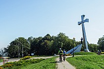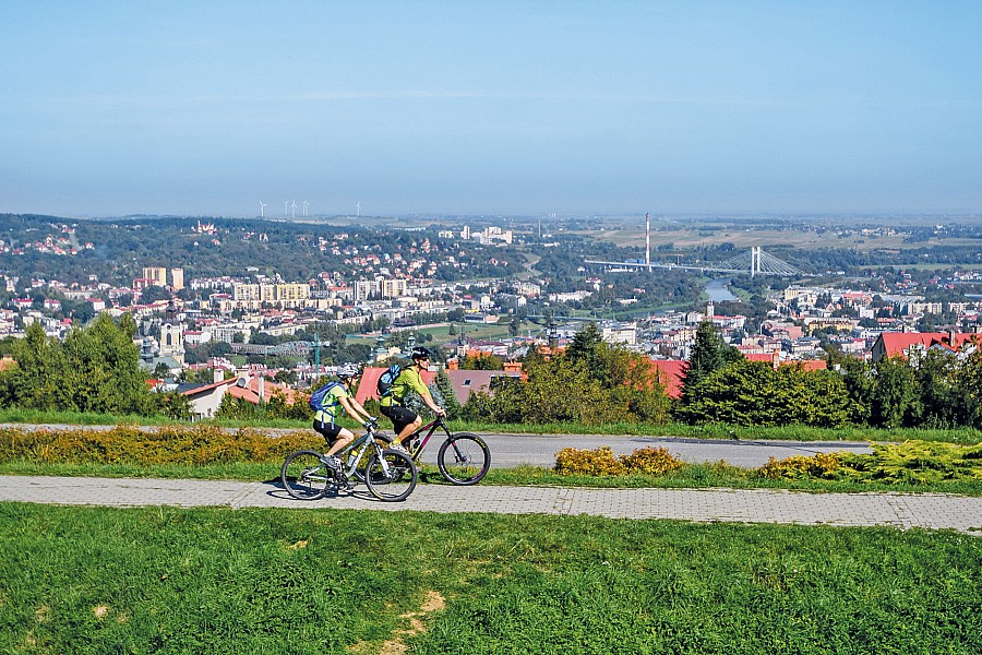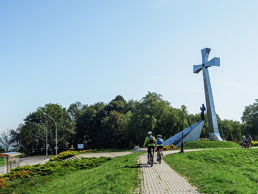 To druga część Fortecznej Trasy Rowerowej wokół Przemyśla, tym razem obejmująca południową część Twierdzy Przemyśl . Nie będziemy się ściśle trzymać szlaku rowerowego. Pojedziemy także szlakami pieszymi. Ruszamy z parkingu obok cmentarza przy ul. Słowackiego. Początek to dość wymagający podjazd ul. Przemysława z nawierzchnią brukową aż do zespołu zabytkowych cmentarzy wojennych Twierdzy Przemyśl. Dalej jedziemy już asfaltem. Mijamy kolejno: Kopiec Tatarski, Krzyż na Zniesieniu, punkt widokowy z piękną panoramą na Przemyśl i górną stację wyciągu narciarskiego. Kolejne dwa kilometry pojedziemy wzdłuż czerwonego szlaku pieszego – widokową, falującą drogą asfaltową. Od przełęczy czeka nas mozolny podjazd na Wapielnicę, gdzie skręcamy w lewo, za czarnym szlakiem pieszym. Wjeżdżamy tutaj na szlak Fortecznej Trasy Rowerowej, ale z uwagi na niekompletne oznakowanie należy posiłkować się znakami szlaku pieszego. Od rozwidlenia szlaków (z fortem Helicha nieco dalej) czeka nas długi, ekscytujący zjazd szutrówką do Grochowców. We wsi po prawej stronie znajduje się kolejny fort – oznakowany jedynie czarnym szlakiem dojściowym, łatwo więc przeoczyć zjazd. W Pikulicach, za znakami szlaku pieszego, zjeżdżamy z głównej drogi w prawo. Lekki podjazd kończymy zjazdem boczną szutrówką do Nehrybki. W Łuczycach po przekroczeniu kładką rzeki Wiar – z uwagi na nieprzejezdny charakter ścieżki (stromizna i gęste zarośla) – opuszczamy szlak pieszy, udając się szosą w lewo, tak, jak prowadzi szlak rowerowy. Z prawej dojście przez posesję do niewielkiej cerkwi z zachowanym ikonostasem . Za kościołem droga wzdłuż czarnego szlaku doprowadza do fortu Łuczyce. W Jaksmanicach ponownie opuszczamy szlak pieszy, udając się szosą za znakami szlaku rowerowego. Czarnym szlakiem pieszym mogą udać się trasą alternatywną zwolennicy terenowych wariantów. Jadąc szosą po spotkaniu szlaku czarnego należy odbić w prawo, jeżeli chcemy zwiedzić Fort W-I Salis Soglio. Wracając, na rozjeździe skręcamy w prawo i ekscytującym zjazdem opadamy do Fortu XV Borek . Dalej widokowym asfaltem dojeżdżamy do drogi krajowej nr 28. Zachowajmy ostrożność, bo mimo, iż biegną tu trzy szlaki rowerowe, droga aż do granic miasta nie ma ścieżki rowerowej. Na rondzie przed restauracją McDonald’s skręcamy w lewo i ulicami S. Batorego, a następnie Bakończycką wracamy na parking.