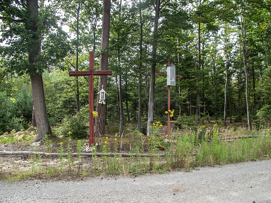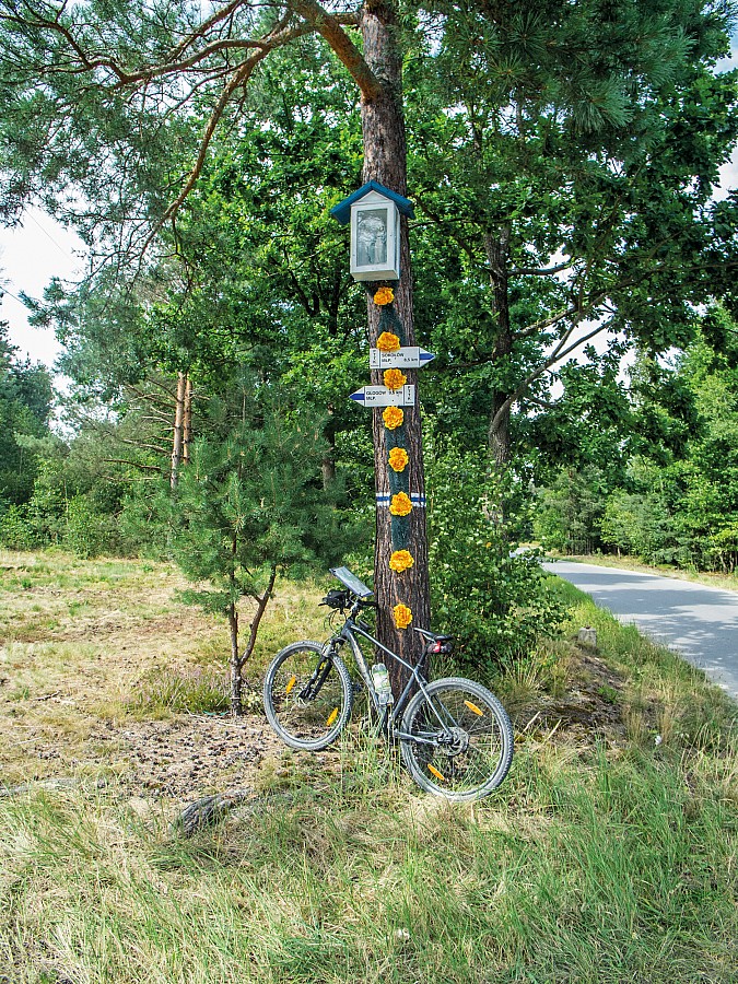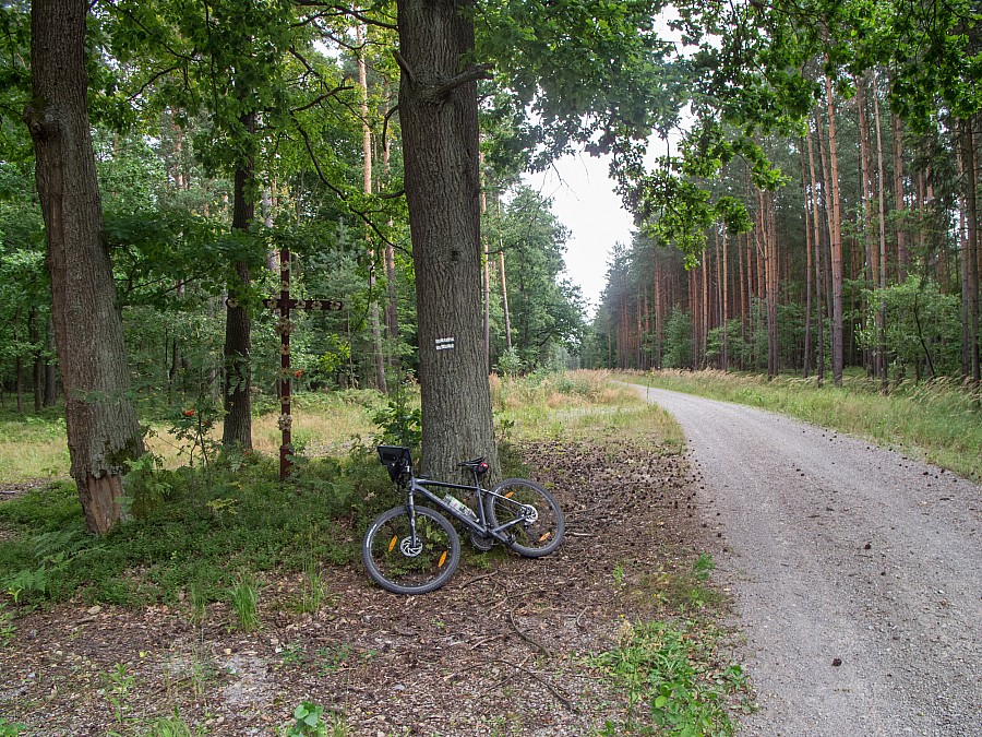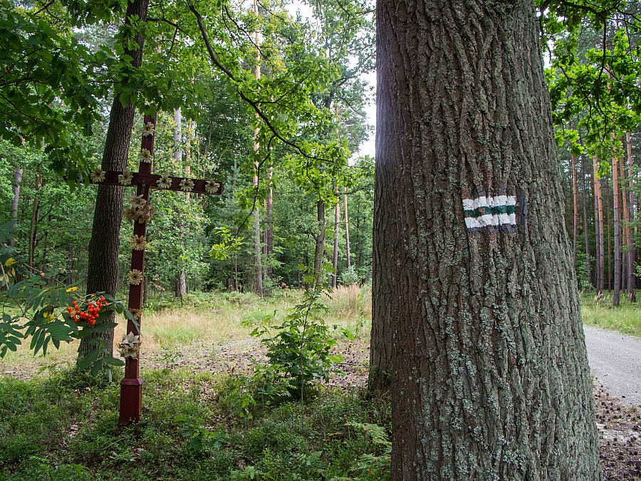 Łatwa, rekreacyjna trasa poprowadzona wśród kompleksów leśnych na północny-wschód od Głogowa Małopolskiego. Przebiega w większości po leśnych utwardzonych drogach, wyznakowanych szlakach oraz lokalnych asfaltach o niewielkim natężeniu ruchu samochodowego. Samochód zostawiamy w centrum Głogowa, przy rynku , skąd też zaczyna się nasza trasa. Startujemy spod ratusza i jedziemy niebieskim szlakiem pieszym PTTK, ulicami: Mickiewicza, Prusa, Polną i Cichą. Na końcu ulicy Cichej wjeżdżamy do lasu, cały czas kierując się znakami szlaku niebieskiego. Po ok. 600 m dojeżdżamy do asfaltowej drogi i skręcamy w lewo. Jedziemy najpierw asfaltem, potem szutrem, około 7 km przez las. Na dziesiątym kilometrze trasy, na skrzyżowaniu w Hucisku, skręcamy w prawo, w kierunku miejscowości Nienadówka Górna. 1300 m dalej skręcamy w prawo, w asfaltową uliczkę, następnie znowu w prawo i dojeżdżamy do końca drogi asfaltowej. Wjeżdżamy do lasu. Leśną drogą jedziemy około 1200 metrów a następnie skręcamy w prawo, w charakterystyczną piaszczystą drogę. Po około 600 m dojeżdżamy do zbiornika przeciwpożarowego i drogi przeciwpożarowej oznaczonej numerem 9. Jedziemy prosto do przysiółka Osiczyna. Skręcamy w prawo, w szeroką szutrową drogę i po około kilometrze, za leśniczówką, skręcamy w prawo. 500 m dalej spotykamy zielony szlak pieszy i jedziemy wraz z nim w kierunku południowym. Po drodze mijamy kilka przydrożnych krzyży. Dojeżdżamy do drogi lokalnej pomiędzy Głogowem a Wysoką Głogowską. Skręcamy w prawo, by po około dwóch kilometrach znów skręcić w prawo, w kierunku Huciska i połączyć się ze szlakiem niebieskim, którym rozpoczynaliśmy wycieczkę. Z tego miejsca wracamy tą sama drogą do rynku w Głogowie Małopolskim.