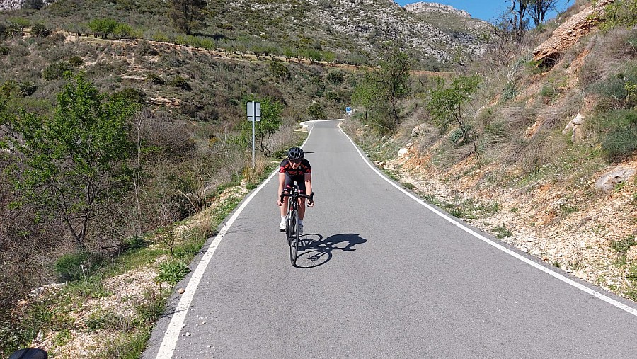 Głównym celem na tej trasie był jeden z bardziej znanych podjazdów w okolicy - Coll de la Vall d'Ebo. Z La Nucia najpierw trzeba podjechać do miasteczka Tàrbena, skąd mamy 2 możliwości. Proponowana przeze mnie runda to podjazd od tej łatwiejszej strony, czyli z La Vall d'Ebo. Mamy tu ok 3.5 km do samego szczytu oraz 165 m przewyższenia o średnim nachyleniu 6.7%. Nic jednak nie stoi na przeszkodzie, by pokonać rundę w odwrotnym kierunku i wówczas podjazd zaczyna się w Pego i liczy sobie 8.7km i 474m przewyższenia, duży fragment tej trasy można zobaczyć w opisie Z Calpe przez kultowe podjazdy Vall de Ebo i Coll de Rates.
