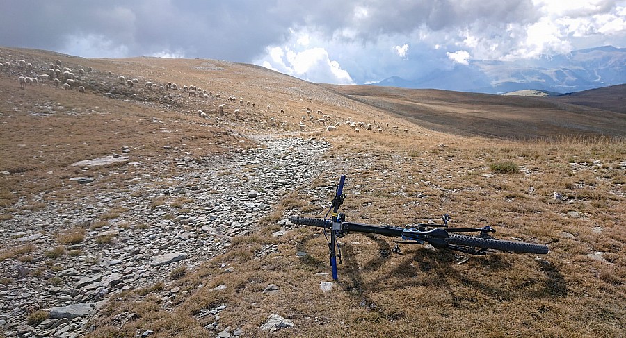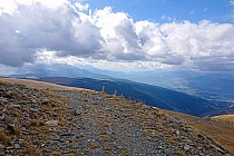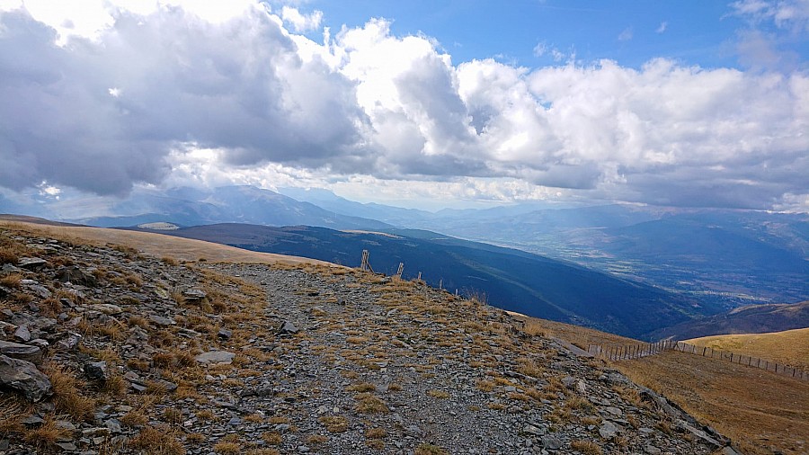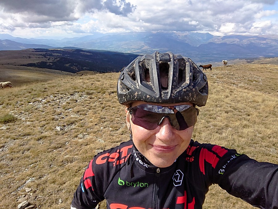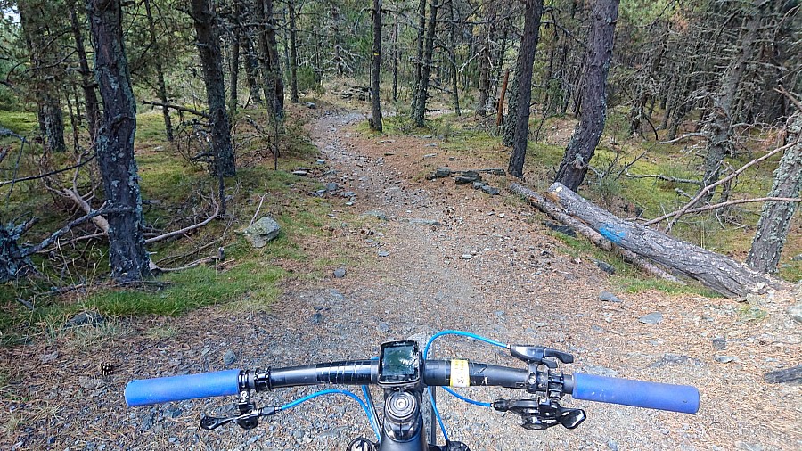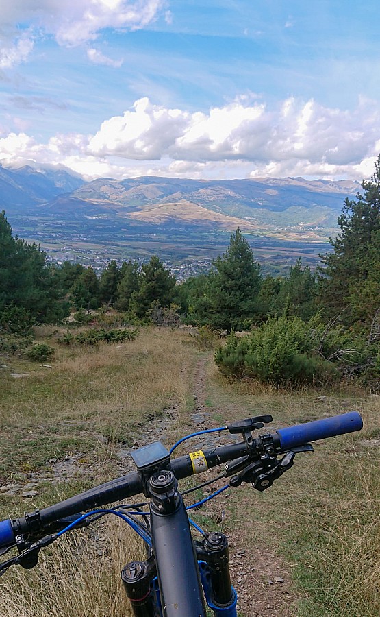 Ale nie wracam już asfaltem tylko singletrackiem Osséja Maxi Trail , początkowo trochę się gubię bo jadę po łące, gdzie ledwo widać ślady. Ale potem wjeżdżam w las i ścieżka staje się już wyraźniejsza. Około 7.5km przyjemnego, niezby trudnego zjazdu, który prowadzi z powrotem do Osseja. Z przodu mam fajny widok na przeciwległe góry. Do Hiszpanii wracam przez Bourg-Madame. Wrażenia zostają ze mną nad dłużej ;)