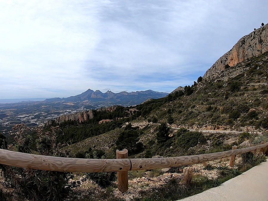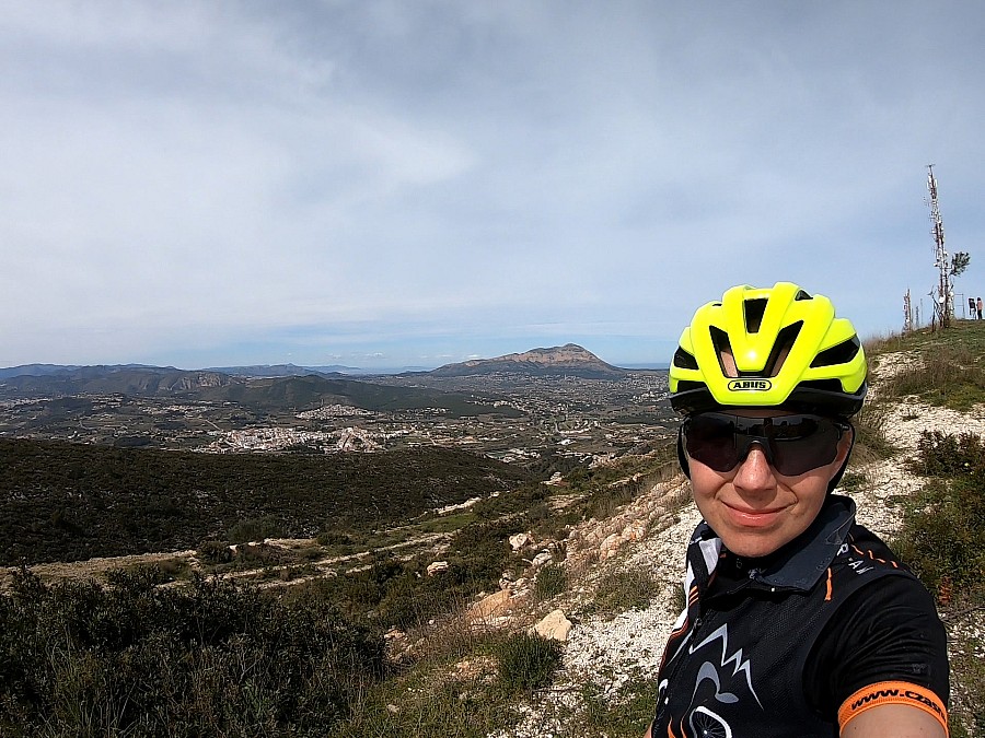 Minus jest taki, że droga się kończy, więc po chwili na podziwianie okolicy musimy zawrócić i zjechać tą samą drogą. Wracamy do Calpe przez Altea Hills, żeby sobie urozmaicić drogę. Wjeżdżając do Calpe, mijamy dwa kolejne ronda i kierujemy się na Benissa. Szeroką drogą N-332 jedziemy aż do Pinos i dalej Benissa. Na rondzie odbijamy w prawo i najpierw krótki podjazd, za nim zjazd i będzie kierunek Calpe. Jedziemy pod górę, ale odbijamy przed końcem wzniesienia na Teulada. Po kilku kilometrach zjazdu wjeżdżamy do miasteczka, mijamy kolejne światła i na końcu obieramy kierunek Moreira. Po dojeździe na sam dół, na drugim rondzie jedziemy w 3 zjazd na Alcasar. Droga wiedzie lekko w górę i kiedy dojedziemy do ronda przy Mercadona, odbijamy w prawo i to będzie już początek drogi na Cumbre del Sol (442 m n.p.m.).