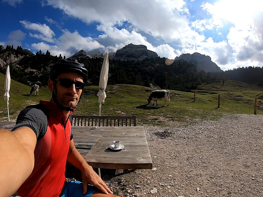 Na tym można spokojnie skończyć udaną wycieczkę rowerową, ale jeśli komuś jeszcze brakuje wrażeń jest dodatkowa atrakcja. Można wjechać bardzo stromą drogą częściowo utwardzoną, częściowo szutrową z dużą ilością zakrętów na płaskowyż na wysokości ok 2000m npm gdzie znajduje się Rifiugio Fodara Vedla. Jest to zadanie bardzo trudne, bo przewyższenie wynosi ok 500 m. Może być konieczne podprowadzenie roweru na najtrudniejszym odcinku. Nagrodą za ten wysiłek jest wspaniały widok z góry na dolinę Marebbe i wizyta w miejscu jak z bajki, gdzie nie ma internetu, a natura wchodzi z kopytami do chatki, w której wypijesz najlepsze włoskie espresso;)