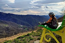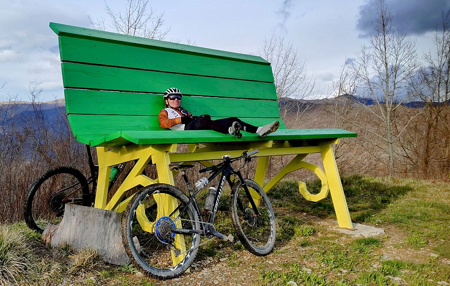 Celem dzisiejszej trasy jest podjazd na wielką ławkę (Big Bench) N. 253 Vobbia na wysokości ok. tysiąc metrów nad poziomem morza. Tuż obok znajduje się Capella di San Fermo na wysokości 1177 m, do którego prowadzi asfaltowa droga. Natomiast do samej ławki musimy wjechać w teren i pokonać kilkaset metrów wąskim szlakiem turystycznym. Największa część trasy prowadzi nawierzchnią szosową. Fragment liczący ok. 5 km z przejazdem przez wielką ławkę i obok szczytu Monte Carlo to dość trudny singiel w terenie.