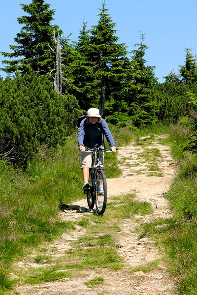 Wycieczkę zaczynamy w miasteczku Špindlerův Mlýn, znajdujemy czerwony szlak turystyczny, na którym jest wyznaczona także ścieżka rowerowa i kierujemy się do miasteczka Horní Mísečky (1000 m n.p.m.). Momentami będziemy się zmagać z dosyć sporymi podjazdami po leśnych ścieżkach. O ile mnie pamięć nie myli poprowadzona jest tam trasa downhill'owa. Gdy już osiągniemy nasz pierwszy cel, znajdujemy asfaltową ścieżkę rowerową wiodącą serpentynami aż do schroniska górskiego 'Vrbatova bouda', które leży na wysokości 1396 m n.p.m. na karkonoskim wzgórzu Zlate navrsi.