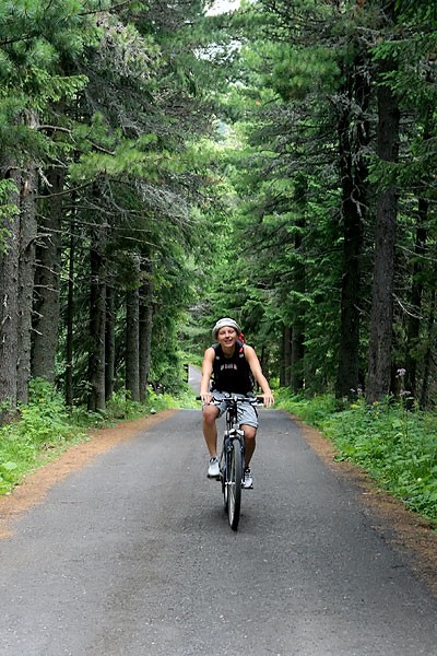 Aby udać się nieco wyżej - na wysokość 1494 m n.p.m. - musimy odnaleźć niebieski szlak turystyczny, którym jest także wytyczona ścieżka rowerowa. Podłoże jest asfaltowe, miejscami trochę dziurawe, ale to w sumie nie szkodzi, spokojnie można się wspinać (momentami trochę strome podjazdy) aż do samego jeziora Popradzkiego. Na miejscu zobaczymy też Chatę pri Popradskom pleso, gdzie niestety musimy się rozstać z naszym rowerem. Jak ładnie poprosimy personel tej chaty to przechowają nam rower pod kluczem. W dalszą drogę udamy się już piechotą.