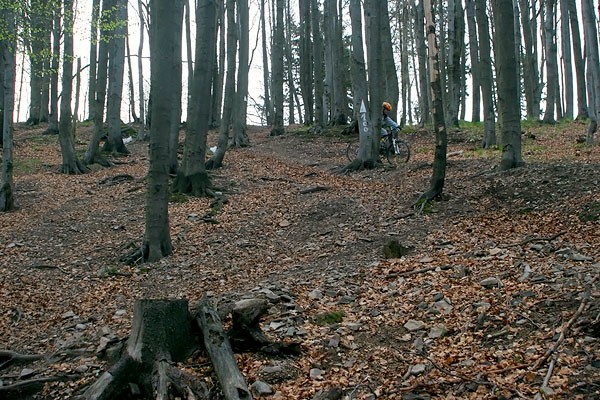 Na początek zdobywamy Górę Parkową w Szczawnie. Wyruszamy spod Domu Zdrojowego i podjeżdżamy chodnikami i ścieżkami parkowymi - trasami profesjonalnego wyścigu organizowanego przez Czesława Langa. Mijamy Słoneczną Polanę, gdzie znajduje się tor zjazdowy do zawodów downhillowych. Docieramy na Wzgórze Gedymina (530 mnpm.) i wracamy niebieskim szlakiem w dół. Po drodze jest trochę niespodzianek - korzenie i kamienie na trasie, dosyć strome zjazdy po nierównej nawierzchni.