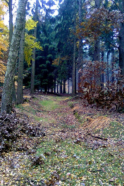 Aż do Raduni trzymamy się szlaku, potem pojawiają się rozbieżności. Nie ma raczej sensu kontynuować wycieczki dalej tym szlakiem, bo raczej czekałoby nas znoszenie roweru niż zjeżdżanie, ale jest tam alternatywna ścieżka, która pozwala objechać Radunię od północnej strony i która doprowadzi nas z powrotem do niebieskiego szlaku i Przełęczy Tąpadła.