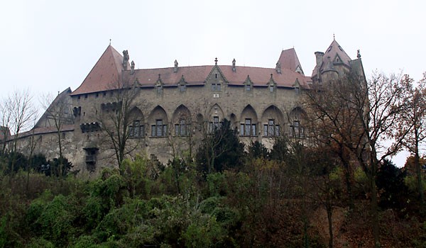 Po przejechaniu kilku kilometrów na pn-wsch. mozna natrafić na drogowskaz: Korneuburg-zentrum. Tym tropem mozna dojechać do centrum urokliwego miasteczka Korneuburg, gdzie można odpocząć w lodziarni lub kawiarni, albo na ławce. Jadąc dalej 4 lub 5 skrzyżowań główną droga Donau- Bundesstrasse można znaleźć drogowskaz rowerowy na Leobendorf i skręcić w prawo w Leobensdorfer Strasse. Ruch samochodowy jest niewielki, ale i tak całą droge między miastami można przejechać szeroką droga rowerową. Dalej drogowskazy trochę się urywają, ale trochę klucząc można dojechać do podnóża zamku. Zostało jeszcze 100- 150 m. podjazdu i można oglądać z góry całą okolicę z zamku Burg Kreuzenstein.