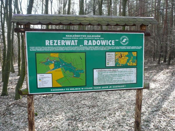 Startujemy w centrum Sulechowa i udajemy się w kierunku nowo powstającego basenu, który mijamy z prawej strony - jedziemy drogą gruntową obok działek i po kilkuset metrach wjeżdżamy na kamienistą drogę łączącą Krężoły z Obłotnem. Poruszamy się tą drogą w kierunku Obłotna i po ok 1 km zjeżdżamy z niej w lewo w kierunku lasu. Następne 300 metrów i docieramy do rozwidlenia na którym skręcamy w lewo (możemy również pojechać prosto, wówczas mniej będziemy pedałować po ubitym tłuczniu). Rozpoczyna się bardzo ciekawa, pofałdowana droga. Po ok 2 km wspinaczek i zjazdów docieramy do "Najgrubszej Sosny w Polsce" i tuż przed nią skręcamy w prawo. Kolejny kilometr i docieramy do świetnej drogi łączącej trasę nr 32 z drogą na Podlegórz. Polecam tą drogę - droga przez las, wysypany i utwardzony tłuczeń. Co chwilę podjazdy i zjazdy, a co najważniejsze droga ta prowadzi przez "Rezerwat Przyrody Radowice" - w większości porośnięty 100-letnim lasem bukowym o bardzo urozmaiconej rzeźbie terenu. Jadąc dalej po tłuczniu dojeżdżamy, po ok 10 km ok startu do skrzyżowania i na nim skręcamy w lewo (skręcając w prawo wjeżdżamy na drogę piaszczystą i po ok 3 km docieramy na Kruszynę). Następne 4 km i droga zamienia się w typową gruntówkę prowadzącą pierwsze 2 km przez las, następnie skrajem lasu by w końcu przeistoczyć się w drogę pośród pól, którą dojeżdżamy prawie do Smolna Wielkiego. Teraz droga zamienia się w asfaltówkę, która doprowadzi nas aż do Sulechowa. Po drodze warto zatrzymać się w Trzebiechowie i odpocząć przy mieszczącym się w tej niewielkiej mieścinie pałacu. Szczególnie polecam rozległy park krajobrazowy mieszczący się na jego tyle.