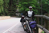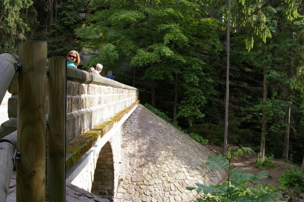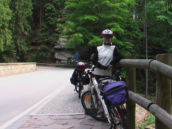 Droga wiedzie w dół do Mladkova, obok słabo oznakowanego turystycznego przejścia granicznego. Łatwo je przeoczyć! Nam się właśnie tak przytrafiło. Na właściwą drogę zawrócili nas mili czescy leśnicy w Mladkovie. Za błąd zapłaciliśmy żmudną wspinaczką.
