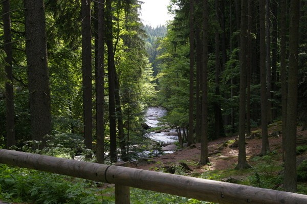 Po czterech kilometrach dojeżdżamy do celu naszej wyprawy - Ziemskiej Bramy. Jest to rezerwat przyrody. Rzeka Dzika Orlica przecina tu góry tworząc malowniczy kanion.
