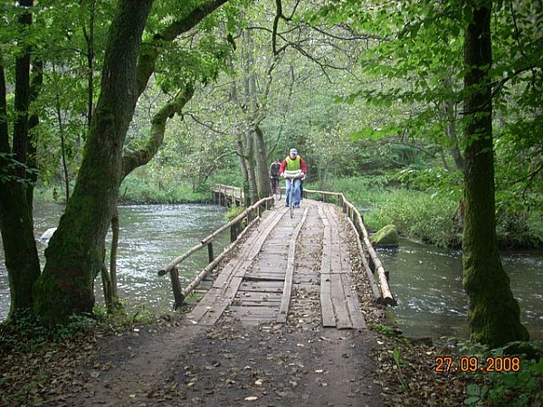 Długość trasy - ok 27 km. Trasa prowadzi z Czarnej Dąbrówki lasem do jez. Kozińskiego, tu wjeżdżamy na szlak "Karwieńskie Uroczyska". Dalej wdłuż jeziora do jez. Mikorowskiego nad zalew, drogą polną w stronę Karwna i do wsi Soszyce. Skręcajac w lewo w strone lasu, drogą pożarową Nr 3 dojazd do szosy Karwno - Podkomorzyce. We Flisowie za rzeką skręt w lewo i górą wzdłuż rzeki Łupawa dojazd do Czarnej Dąbrówki.