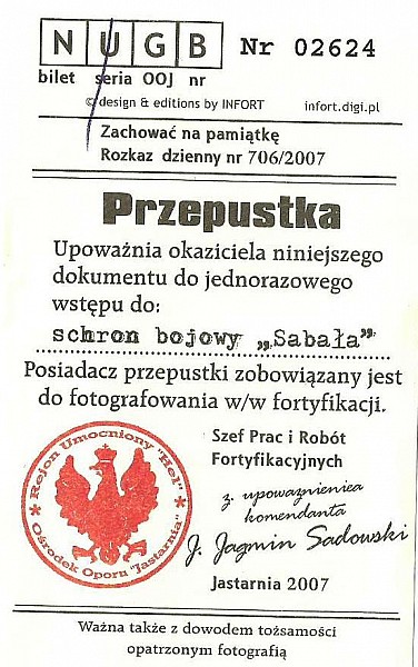Schron SABAŁA czynny dla zwiedzających. Ceny biletów - normalny 6 zł , ulgowy - 4 zł. ( w sezonie 2011 )