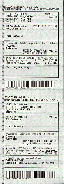 Niestety z powodu braku aparatu fotograficznego nie mam żadnej dokumentacji foto. Zamieszam tylko skany biletów i mapy z zaznaczoną trasą.