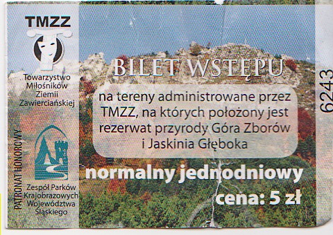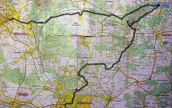 W Zawierciu naprzeciwko dworca znaleźliśmy niebieski szlak pieszy, którym mieliśmy jechać aż do Morska, co nam się jednak nie udało , ale o tym później. Wspomnianym szlakiem wyjechaliśmy w kierunku Morska lecz ze względu na słabe oznakowanie już po kilkuset metrach po raz pierwszy się zgubiliśmy. Trochę czasu zajęło nam ponowne znalezienie szlaku, a po następnych kilkuset metrach sytuacja się powtórzyła. Gdy po raz drugi odszukaliśmy szlak wydawało się, że sytuacja będzie ustabilizowana, nic jednak mylnego – szybka jazda i brak skupienia spowodowały kolejne zabłądzenie. Jadąc wygodną leśną przecinką byliśmy przekonani, że to nasz szlak, a to była tylko leśna ścieżka która zaprowadziła nas do szlaku żółtego, który prowadzi z Zawiercia Borowego Pola do Piaseczna. Sprawdziliśmy na mapie gdzie jesteśmy i znakami żółtymi pojechaliśmy w dalszą drogę. Po kilku kilometrach spotkaliśmy nasz niebieski szlak i bez przeszkód (nareszcie) dojechaliśmy do Morska. W Morsku zrobiliśmy sobie kilkuminutową przerwę na wyrównanie oddechu i niebieskim szlakiem podążyliśmy do Podlesic. Szlak nie zrobił już nam żadnego psikusa i po niedługim czasie dojechaliśmy do podnóża Góry Zborów, a dokładnie w okolice hotelu „Gościniec Jurajski”. Tutaj zmieniliśmy szlak na szosę i z wielką chęcią zwiedzenia tego malowniczego zakątka Jury pojechaliśmy pod „bramę” wejściową do rezerwatu. Gdy dojechaliśmy do wejścia okazało się, że wstęp jest płatny, a rowery należy prowadzić gdyż na terenie góry jest zakaz jazdy. Po krótkim zastanowieniu i zaciągnięciu informacji u strażnika podjęliśmy decyzję o ominięciu szczytu na rzecz przejazdu obok góry. Ruszyliśmy dalej i po kilkuset metrach osiągnęliśmy drugą „bramę” za którą było miejsce na odpoczynek (ławki i stoły). W wspomnianym miejscu zrobiliśmy sobie śniadanie po którym ruszyliśmy w dalszą drogę. Kilkaset metrów od miejsca naszego odpoczynku zostaliśmy zatrzymani przez strażniczkę, która powtórzyła nam to samo co jej poprzednik oraz mocno zachęciła nas do zwiedzenia Jaskini Głębokiej, którą można zwiedzać w cenie biletu wstępu. Skusiliśmy się na wejście do owej jaskini i zaciągnęliśmy informacji gdzie można bezpiecznie zostawić rowery. W celu bezpiecznego przechowania rowerów wróciliśmy do szosy, za którą jest tzw. Chata gdzie nasze pojazdy mogły na nas poczekać. Zwiedzanie jaskini trwało ok. godziny i muszę przyznać, że było warto zapłacić 5 zł by zobaczyć tak piękny i malowniczy obiekt. Po tej atrakcji mając bilety w kieszeni uznaliśmy, że warto by wejść na szczyt Góry Zborów i zobaczyć znajdujące się na jej szczycie skałki. Szosą wróciliśmy do „Gościńca Jurajskiego” gdzie uzupełniliśmy zapas wody i najpierw jadąc asfaltem, a od bramy gdzie okazaliśmy bilety - prowadząc rowery szlakiem zielonym udaliśmy się w kierunku szczytu. Po kilkunastu minutach osiągnęliśmy wierzchołek miejscami niosąc rowery ze względu na stromizny i wąskie przesmyki miedzy skałami. Na szczycie kilkuminutowa przerwa i ruszamy w dalszą drogę szlakiem zielonym, najpierw prowadzimy nasze pojazdy aż wreszcie na nie siadamy i jedziemy. Po drodze spotykamy kilka stromych zjazdów i parę umiarkowanych wjazdów by po kilkudziesięciu minutach osiągnąć zalew w Kostkowicach gdzie kończy swój bieg szlak zielony. Mieliśmy mocną chrapkę by się wykąpać jednak nawet objechanie zalewu nie przyniosło rezultatu ludzi było jak mrówek w mrowisku. Czas wskazywał na godziny obiadowe więc i my zjedliśmy wszystkie zapasy z plecaków i po kilkudziesięciominutowej przerwie ruszyliśmy w drogę powrotną do Myszkowa. Mając na uwadze czas postanowiliśmy wracać szosami by było szybciej. Spod zalewu jechaliśmy wiejską szosą i na pierwszym skrzyżowaniu spotkaliśmy czerwony szlak rowerowy, którym jechaliśmy kilkaset metrów by go opuścić i jechać dalej szosą prowadzącą do drogi nr 792. 792-ką jechaliśmy kilkaset metrów i za mostem kolejowym skręciliśmy w lewo w podrzędną szosę, która prowadziła przez kolejny most kolejowy, za którym na pierwszym skrzyżowaniu spotkaliśmy czarny szlak rowerowy. Czarnym szlakiem wzdłuż linii kolejowej dojechaliśmy aż do przedmieść Myszkowa. W Myszkowie Światowidzie opuściliśmy szlak i miejskimi drogami dojechaliśmy do dworca PKP Myszków, skąd pociągiem pojechaliśmy do domu.