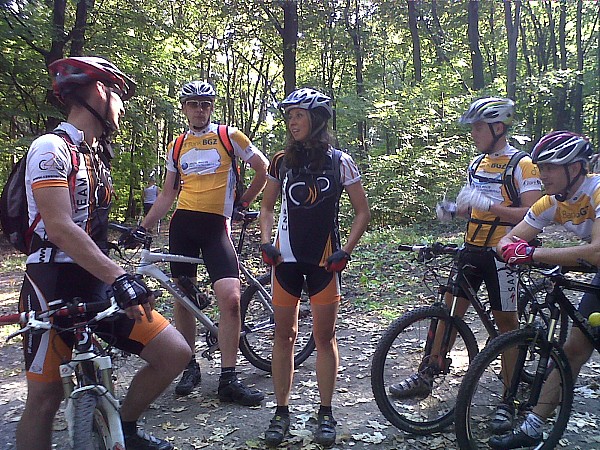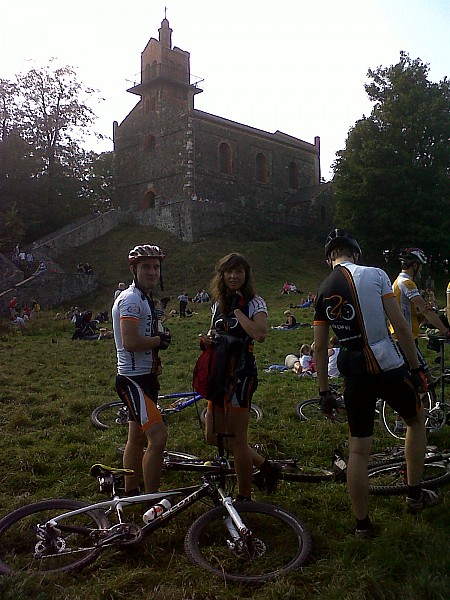 Rozpoczęliśmy trasą znaną z wyścigu xc inaugurującego sezon mtb na Dolnym Śląsku, a więc podjazd pod wyciągiem, dalej skręt do lasu i podjazd aż do schroniska pod Wieżycą. Stąd czarnym szlakiem rowerowym na przełęcz Tąpadła, dalej oczywiście wjazd na szczyt Ślęży żółtym szlakiem i zjazd czerwonym, pełnym kamienistych niespodzianek szlakiem :) Gdy dojechaliśmy do przecinającego niebieskiego rowerowego to odbiliśmy w lewo aby z powrotem wrócić na Tąpadła i dalej kontynuować jazdę na masywie Raduni. Pierwszym celem był oczywiście szczyt, zaczęło się spokojnie szerokim szutrem, w końcówce wjazd na niebieski szlak turystyczny i tu już zrobiło się nieco stromiej, końcówka - ostatnie parę metrów - jak zwykle nie do podjechania (może kiedyś :-).. ). Zjazd bardzo przyjemny niebieskim szlakiem, po drodze ciekawe single-tracki, techniczne odcinki i tak aż do szosy, gdzie w zasadzie kończy się ta najciekawsza część wycieczki.