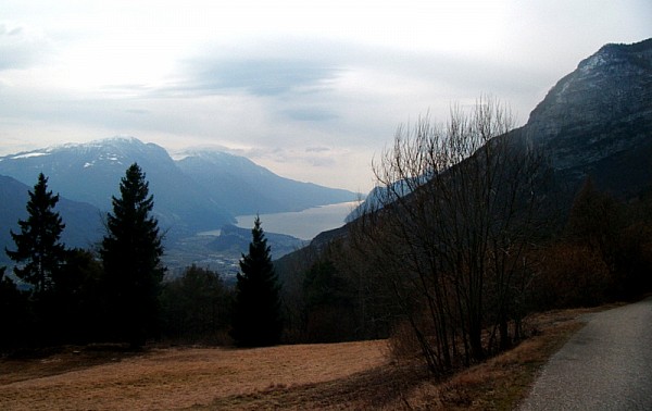 Z malowniczego miasteczka Riva del Garda ruszamy trochę w górę aby popodziwiać uroki włoskich gór. Najpierw kierujemy się na Ceole, a potem obieramy kierunek na San Giovanni. Rozpoczynamy dość żmudną wspinaczkę w górę. Najpierw ciasnymi uliczkami miasteczka, gdzie stopniowo asfalt zaczyna zwiększać swe nachylenie i procenty rosną i rosną... a korby kręcą się coraz wolniej :) Momentami jest ciężko, ale za to coraz piękniejsze widoki na leżące w dole miasteczka rekompensują trudy wspinaczki. I tak pniemy się w górę, zakręt po zakręcie, pokonując kolejne kilometry i podziwiając coraz piękniejsze okolice. My dojechaliśmy tam dokąd jeszcze prowadził asfalt czyli do Marciarie, ale dalej można śmiało zapędzić się szutrami...