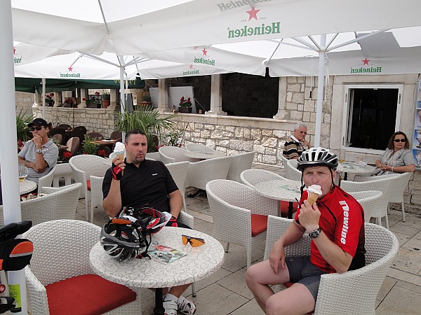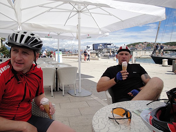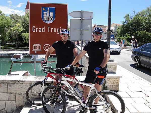 Trasa łatwa cały czas szosą.Jednak upał dawał się we znaki a słońce w czerwcu ostro grzało.Piękne widoki zatoczek i gór.Pojechaliśmy zobaczyć Trogir starówkę i zjeść pyszne lody.Po drodze spotykamy rowerzystów sakwiarzy z innych krajów,pozdrawiamy się jest super.