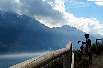 W poszukiwaniu ciekawych widoków warto wybrać się na północno-zachodnią stronę jeziora Garda. Proponuję zacząć od pysznej włoskiej kawy w Rivie nad samym jeziorem. Pobudzeni kofeiną możemy zacząć wyprawę. W stronę Limone zobaczymy początek tunelu więc odbijamy w prawo na rowerową ścieżkę i wspinamy się nad tunel. Tam początek ma jedna z wielu temtejszych tras MTB. Ok 2 km ścieżki szutrowej, gdzie z prawej strony czekają na nas niesamowite widoki. Garda w pełnej okazałości. Gdy zacznie się asfalt ścieżka odbija w prawo gdzie mamy 2 opcje do wyboru. W lewo - Pregasina, niewielkie miasteczko, do którego możemy wspiąć się zakosami. W prawo obieramy kierunek na Biacesca di Ledro. Gdy dojedziemy do głównej drogi odbijamy w prawo gdzie czeka nas kilka kilometrów podjazdu o średnim nachyleniu. Kolejno miniemy Pre (tu trzeba przejechać przez centrum bo na głównej drodze jest zakaz dla rowerów) i dalej Molinę, by w końcu dojechać do Lago di Ledro. Przy dobrej pogodzie i z zapasem czasu można śmiało objechać jezioro dookoła (ok 10km).