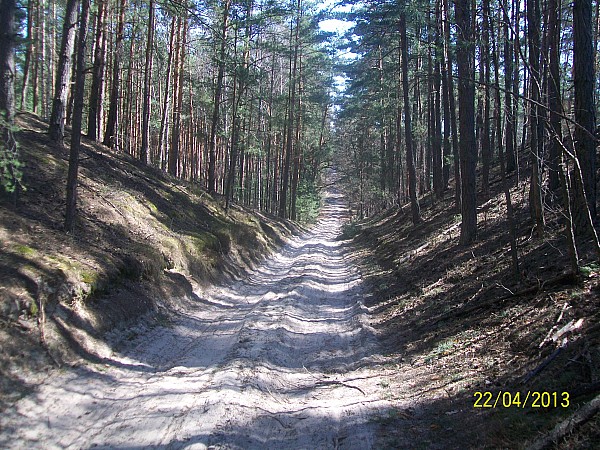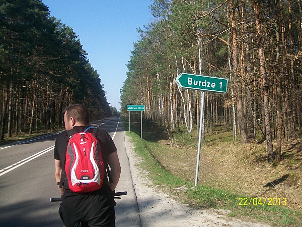 po wjeździe w Stalowe Woli ,z lasu wyjeżdżamy w Alfredówce pierwsze 11 km. to teren z piachem ale nie aż tak bardzo uciążliwym . Następne kilometry do Nowej Dęby po asfalcie i tak praktycznie cały czas /nie licząc krótkiego odcinka w terenie, w Brzostowej Górze/. Dotychczas byłem przekonany ,że po wjeździe do lasu mogę sobie spokojnie jechać i żłopać piwo , ale to odwołuje na 22 kilometrze w środku lasu natknęliśmy się na Nich , albo Oni na nas . Zostaliśmy spisani , skontrolowani po haśle że każdy z nas jest "biały" z naganą wzrokową i pouczeniem puszczeni wolno.