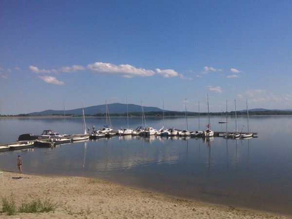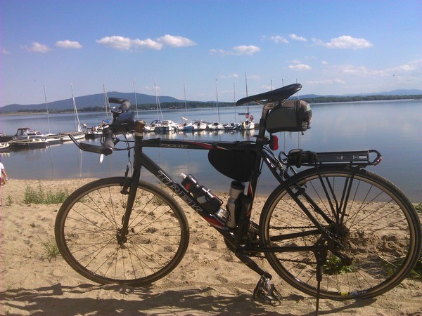 Piękny dzień i nowa trasa z objazdem wokół Zalewu Mietkowskiego. Dopisała mi piękna widoczność, na prawo od Ślęży widoczne były calutkie Sudety, aż po Śnieżkę. Zaś ze wzniesienia drogi, tuż przed Domanicami, po przeciwnej od Wrocka stronie zbiornika, idealnie widoczny był nad tamą Sky Tower. Trasa asfaltowa, jedynie krótki odcinek między Imbramowicami a Borzygniewem wiedzie betonowymi płytami. Godzinka przerwy na plaży i do Wrocka. Satysfakcjonująca i przyjemna, całodniowa trasa.