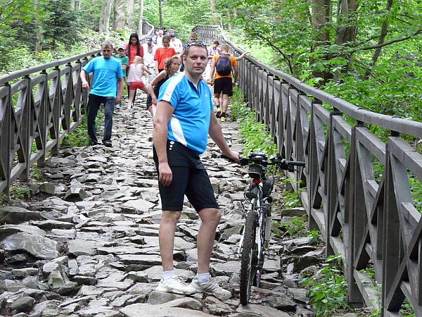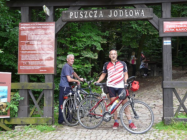 Trasa asfaltowa z wyjątkiem wejścia do parku od strony Nowej Słupi aż na Św. Krzyż i około 10 kilometrów z Wąchocka do miejscowości Siekierno ( Rezerwat Wykus) gdzie są tzw. kocie łby- pozdrowienia dla kolarzy MTB, których tam mijaliśmy po drodze. Początkowo miał być Bodzentyn, ale po drodze dołączył do nas Wacław- główny pomysłodawca tej trasy, który dał się namówić na wspólny wypad i trochę ją zmodyfikował no to w sumie zrobiło się nieco ponad 170 km. Warto w trasę wybrać się w weekend wtedy mniejszy ruch na drodze. Droga dobrze oznakowana. Przez Rezerwat Wykus jedziemy prosto główną alejką, bo chyba ciężko to nazwać drogą. Przed Kielcami napotkaliśmy objazd. Po drodze można jeszcze zatrzymać się w Zagnańsku i Samsonowie ( opisane w poprzednich trasach ). Trasę zaznaczyłem jako umiarkowaną, choć ze względu na wjazd w zasadzie wejście od strony Nowej Słupi można zaliczyć ją do trudnych, a po deszczu bardzo trudnych- są tam kamienie, które mogą być śliskie. Wjazd i zjazd ze szczytu możliwy tylko o strony Huty.