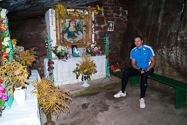Trasa asfaltowa z wyjątkiem góry, gdzie od strony Huciska prowadzą schodki. Kilkukrotnie mijałem to miejsce, bo sądziłem, że nie może być nic ciekawego w kapliczce - pewnie jedna z wielu jakie stoją prze drodze więc po co wchodzić na górę. Przysłuchując się opowieściom znajomych, którzy byli zachwyceni urokiem tej groty, postanowiłem się tam wybrać i samemu ocenić i powiem, że robi wrażenie. Nie tylko pięknem ale i legendą, która można poczytać na miejscu. Choć górę widać z daleka to sam dojazd nie jest oznakowany trzeba było się zapytać okolicznych mieszkańców, którędy najłatwiej aby nie przedzierać się przez krzaki. Tak więc jadąc od strony Kużniaków przy Defro skręcamy w lewo do miejscowości Hucisko i na zakręcie drogi widać już schodki na górę. Warto się tam wybrać we wczesnych godzinach, bo mimo, iż na dole było dość jasno to z samej góry schodziliśmy o latarkach nieco zaskoczeni szybko zapadającym zmrokiem.
