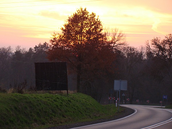 Kolejny przystanek – Niesułków, a po drodze, lasy,pola sady, łąki znieruchomiałe w jesiennej monotonii.